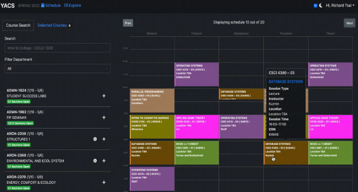 Online class scheduling, course planning, and selection interface for RPI students